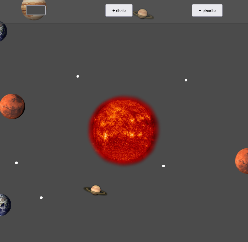 - Si l'on clique sur le soleil, alors après 2 secondes, toutes les étoiles disparaissent (mais les planètes restent).